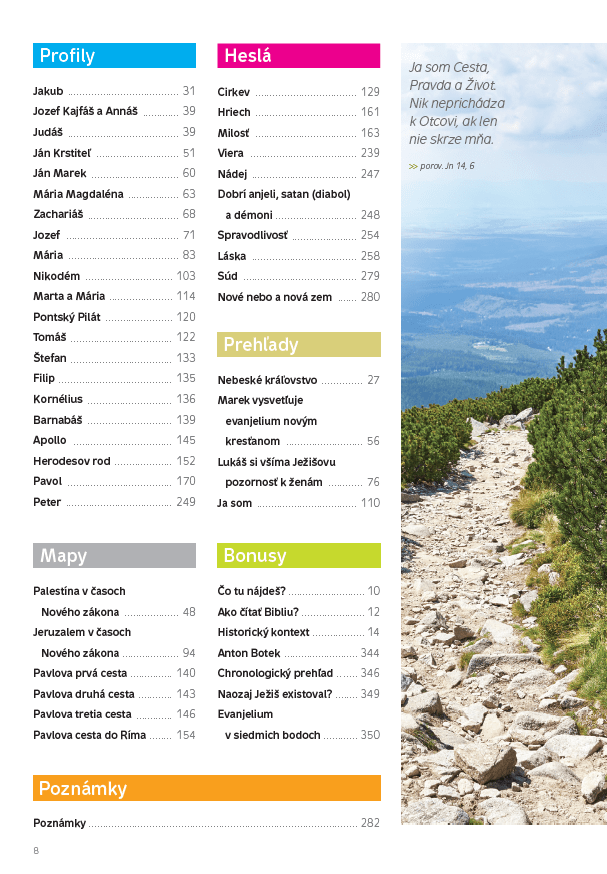 Veľa ďalších bonusov: profily biblických osobností s aplikáciou do života, vynikajúce jeruzalemské vysvetlivky, mapy, historický kontext Ježišovej doby či povzbudenie do čítania Božieho slova.