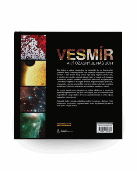 Kniha obsahuje více než 150 plnobarevných stran s kvalitními a detailními fotografiemi, přičemž představuje úchvatnost vesmíru v osmi kapitolách: Země, Měsíc, Slunce, Naše Sluneční soustava, hvězdy, Mléčná dráha, jiné galaxie a tajemný vesmír. Vědecká fakta o vesmíru doplňují citáty z Bible, uznávaných astronomů, vědců či jiných známých osobností.