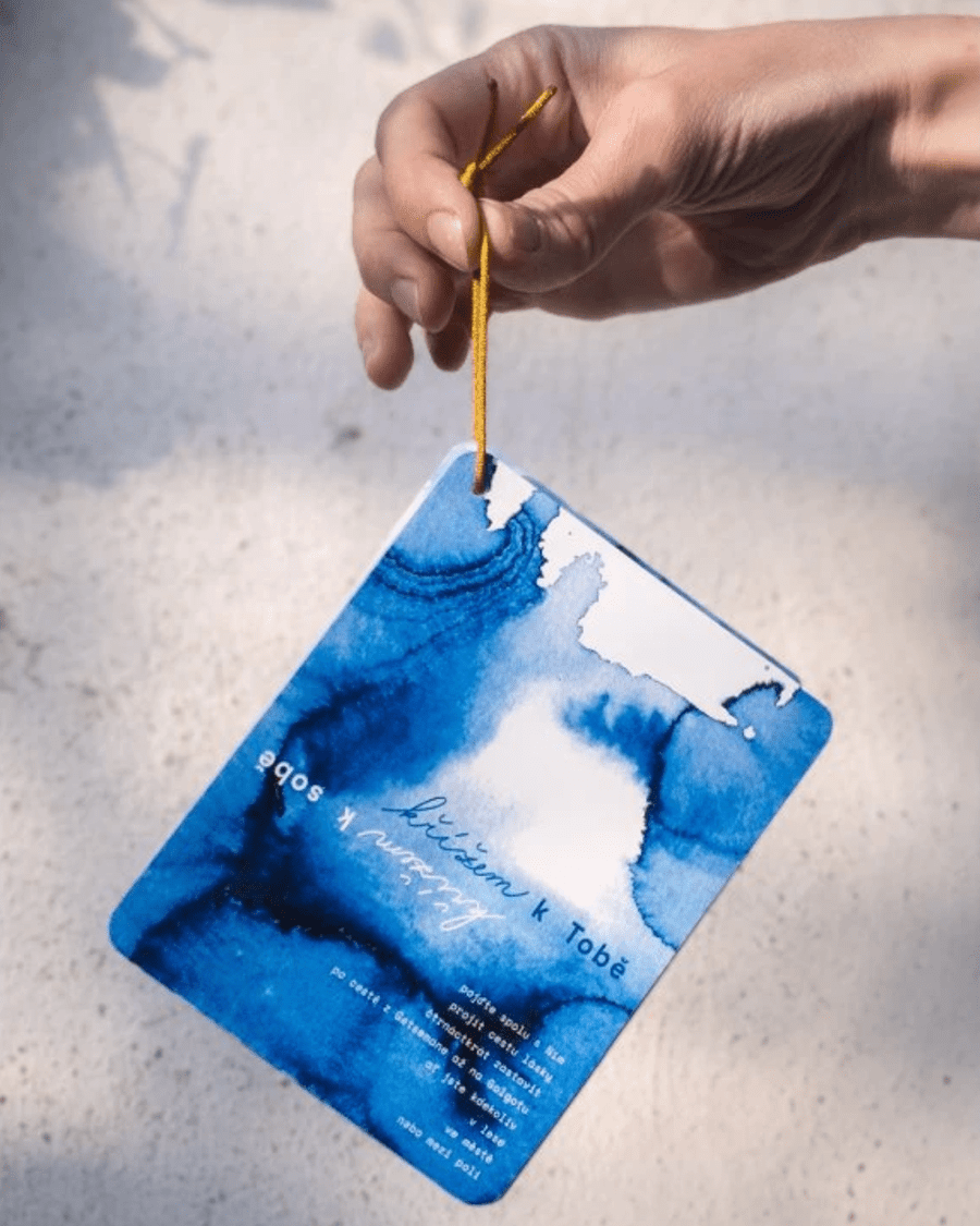 Čtrnáct karet kapesního formátu (11 × 8 cm) se vejde do každé přihrádky vašeho batohu. Vysokogramážní papír, který zabraňuje ohýbání. Spojené dohromady saténovou šňůrkou, abyste žádnou neztratili.