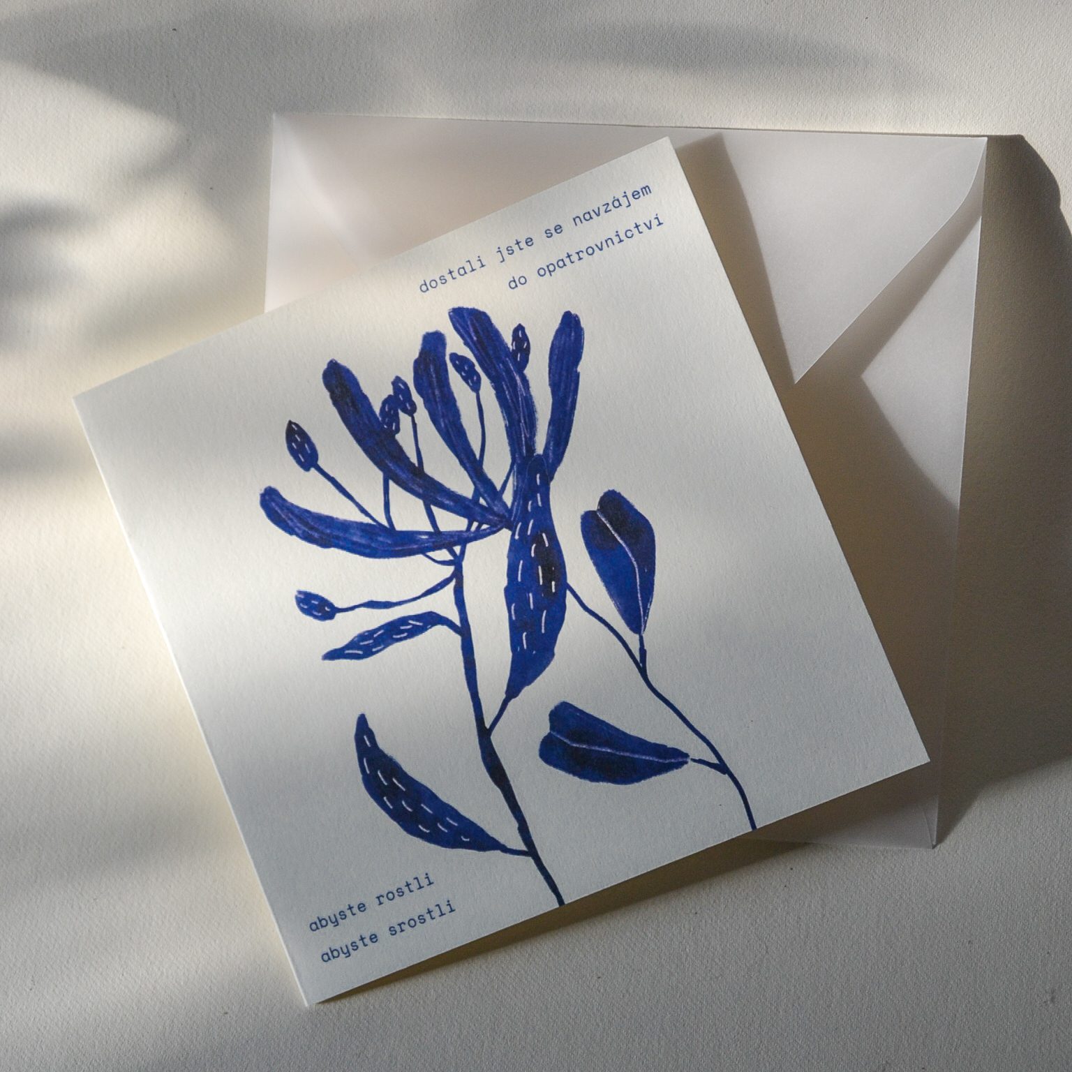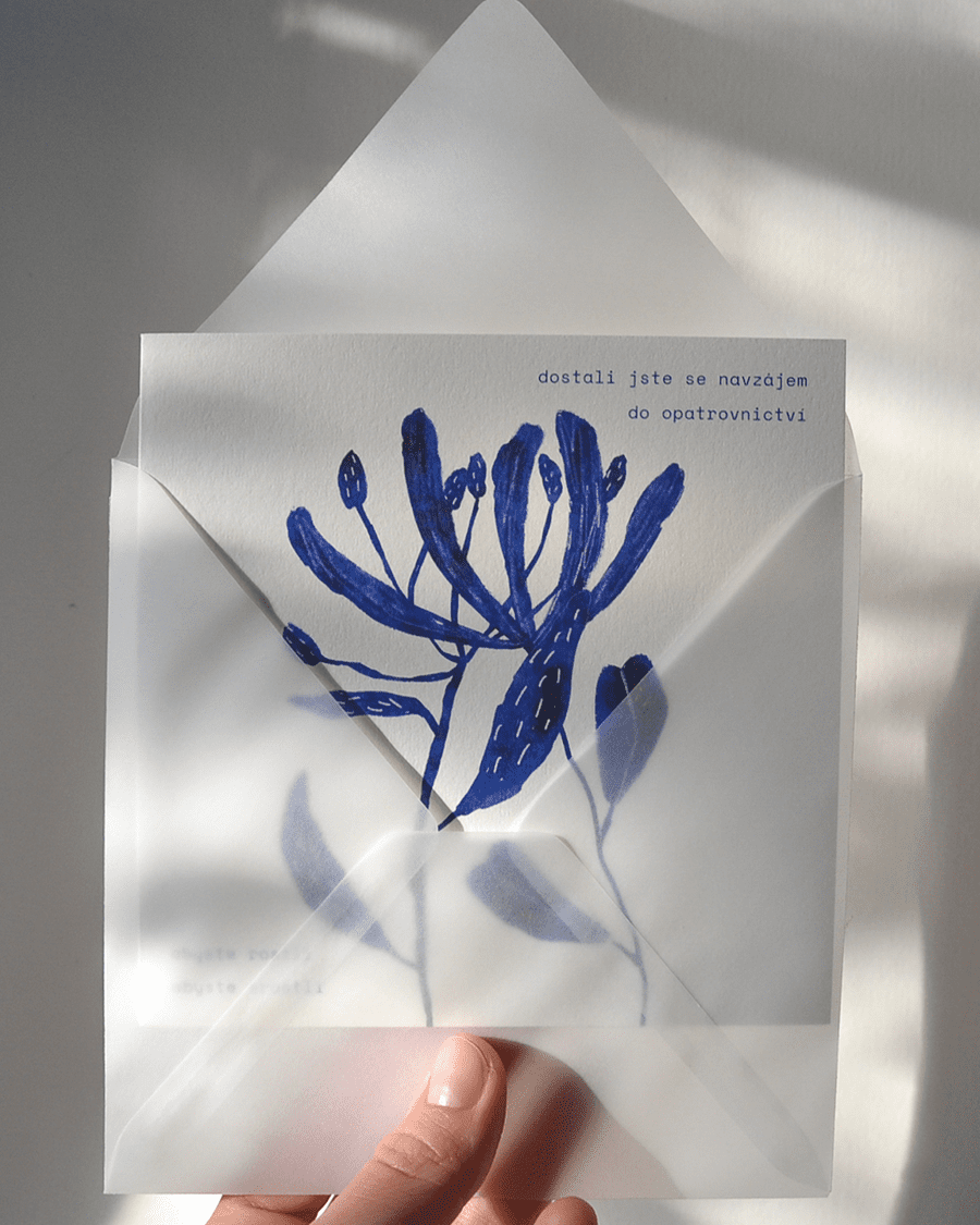 Karta je uvnitř prázdná, bez textu a čeká na slova, která dovnitř sami napíšete. Součástí balení je transparentní obálka, ve které můžete přání věnovat nebo ji zalepit a poslat poštou.